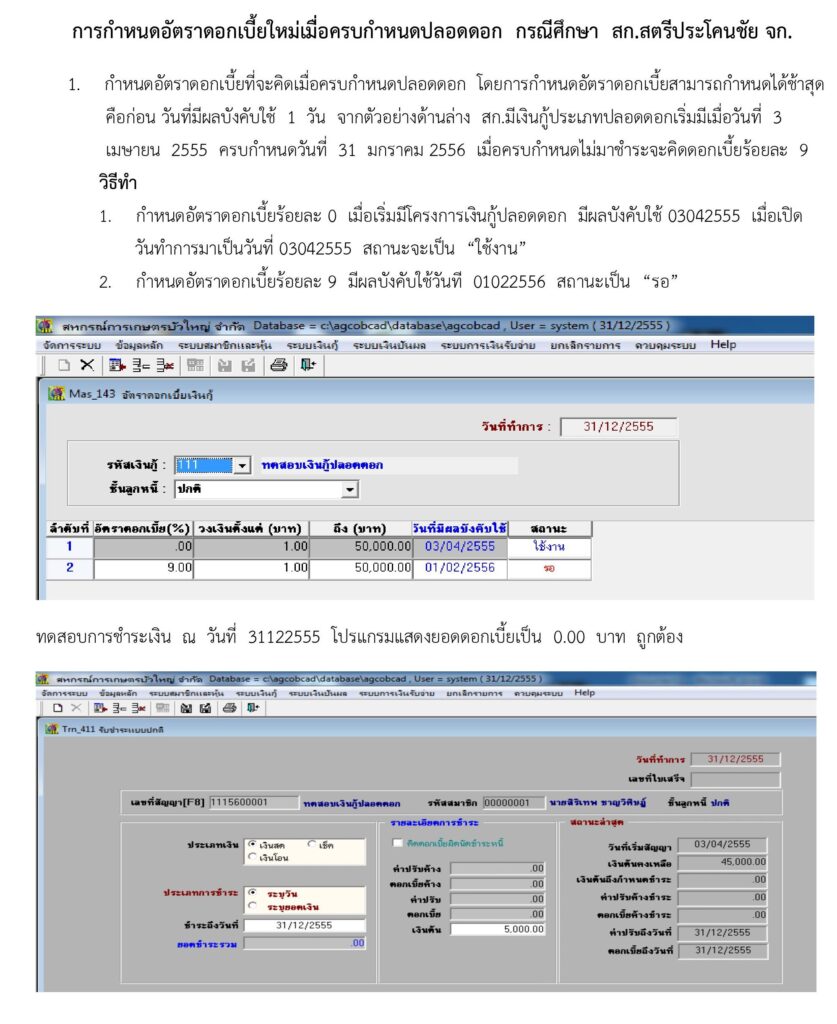 Home/Knowledge Base/ระบบสมาชิกและหุ้นและระบบเงินให้กู้ 1.9/กำหนดอัตราดอกเบี้ยใหม่เมื่อครบกำหนดปลอดดอก