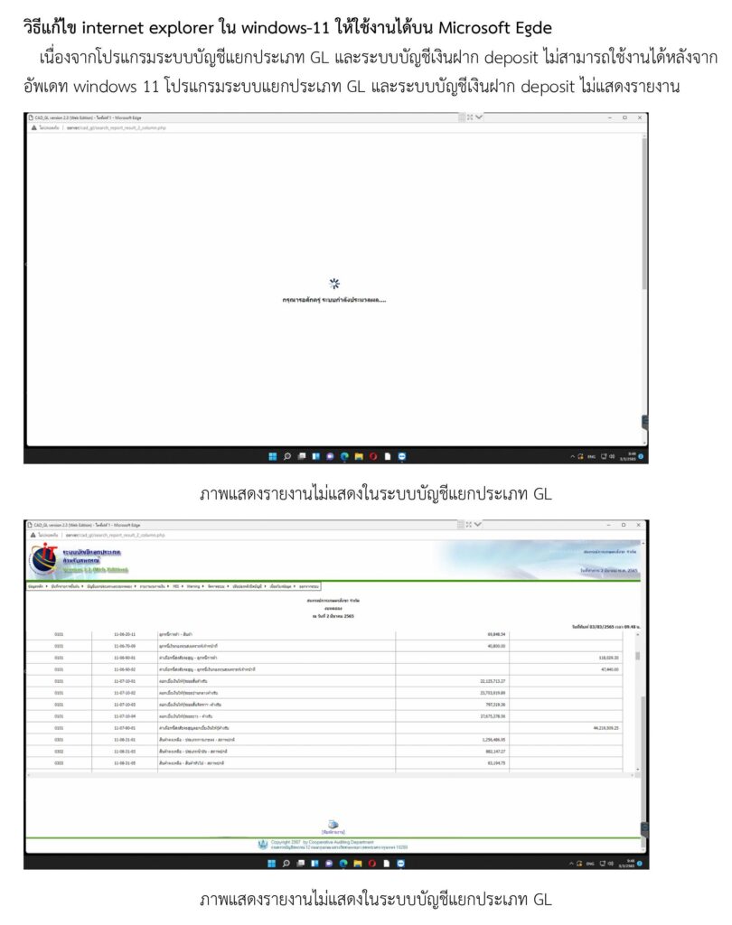 วิธีแก้ไข internet explorer ใน windows 11 ให้ใช้งานบน Microsoft Egde GL และระบบเงินรับฝาก รายงานไม่ออก ไม่แสดงรายงาน